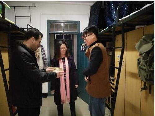 2015年11月29日上午,我们党委邓华书记和马俊副书记到寝室慰问在巡逻时斗智勇救落水者的蔡志东同学,随行的还有15级辅导…