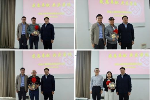 孙小燕副院长首先宣读了2024年10月至2025年9月期间光荣退休的教师名单,包括工创中心刘诗月、张怀亮、张莉莎、彭高明、蔡小华,微系统制造科学与工程系周立,机械制造系张星星、罗筱英,机械设计系邹利民、徐绍军、徐海良,车辆工程系胡均平,轻合金研究院周亚军。院长段吉安为荣休教师逐一颁发纪念品,向为学院奉献一生的老师们致以节日的问候和崇高的敬意。