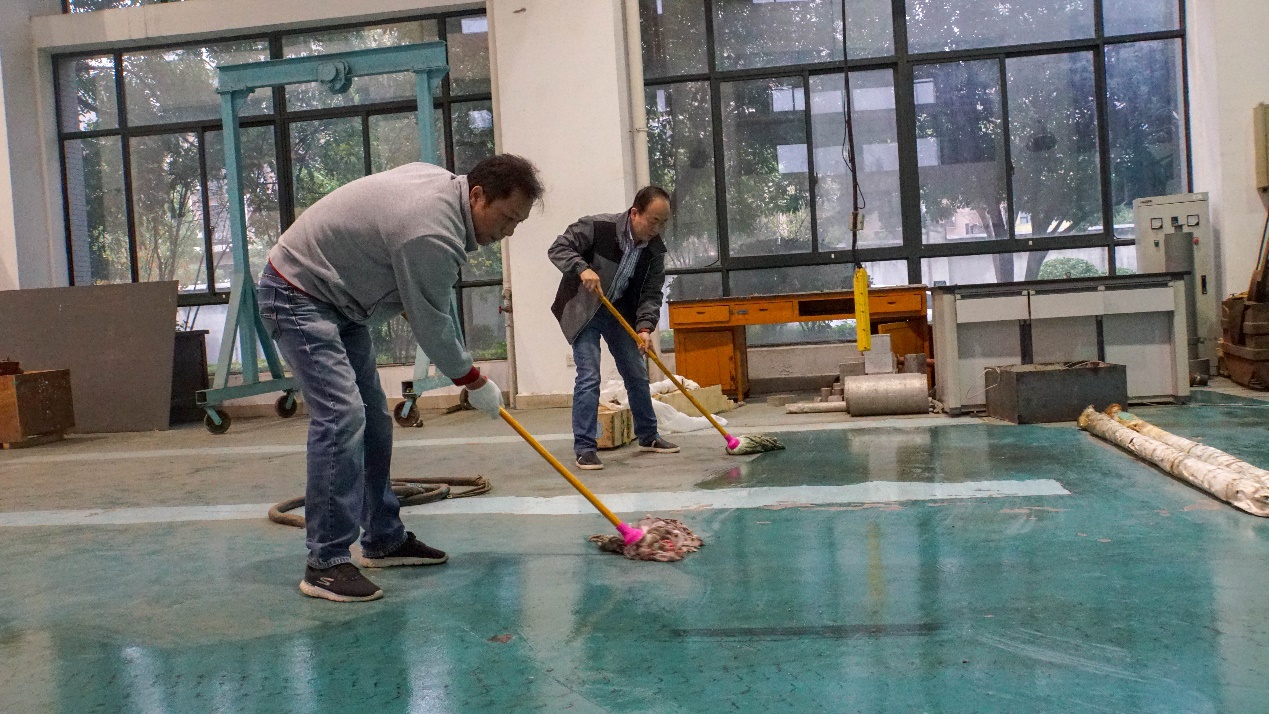 9月25日下午,伟德bv1946官网党委班子成员在开展学习研讨后,集体到机电楼内实验室开展卫生大扫除志愿服务活动,带头为群众办实事、办好事。党委书记肖来荣带队,班子成员带着拖把、水桶、抹布等清洁工具,来到工程装备与特种机器人实验室,开始了热火朝天的大扫除工作。班子成员们戴上手套,打水拖地、清理杂物、擦拭设备,分工合作,认真打扫,不放过任何一个角落。经过一个半小时的努力,实验室焕然一新,干净整洁。