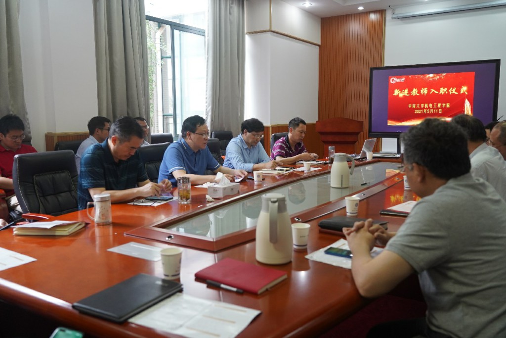 2021年5月11日上午,学院在机电楼C208会议室举行新进教师入职仪式,全体院领导、系所主任(支部书记)和21位新进教师约40人参加,副院长帅词俊主持会议。