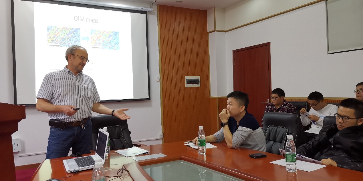Zhilyeav教授做的学术报告题目为“Heterogeneous microstructure of FCC metals subjected to asymmetric rolling”,基于此,Zhilyeav教授还向大家介绍了EBSD工具研究超细晶金属材料的一些优点和局限性。Pesin教授做的学术报告题目为“Developing “natural” and heterogeneous composite aluminium alloys with a gradient nanostructure”,重点讲述了采用异步轧制开发梯度结构材料的一些研究进展。Tandon教授做的学术报告题目为“Incremental sheet forming at elevated temperature”,介绍了他们课题组在单点成形制备轻量化金属材料构件中的应用。这次学术报告得到了参会师生的高度评价和激烈讨论。