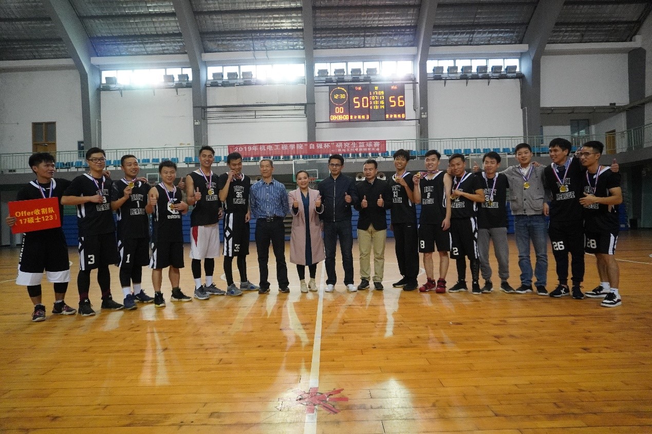 决赛结束后,本届“自强杯”研究生篮球赛闭幕式正式开始。机电院欧阳鸿武老师、邵文老师老师、何婷老师分别为冠军 “Offer收割队”、亚军“青研队”和季军“1617博士联队”颁奖。同时,孙鹏同学获得本届比赛“最有价值球员”称号,邵文老师和欧阳鸿武老师分别获得“最佳领队”和“最佳指导老师”称号。
