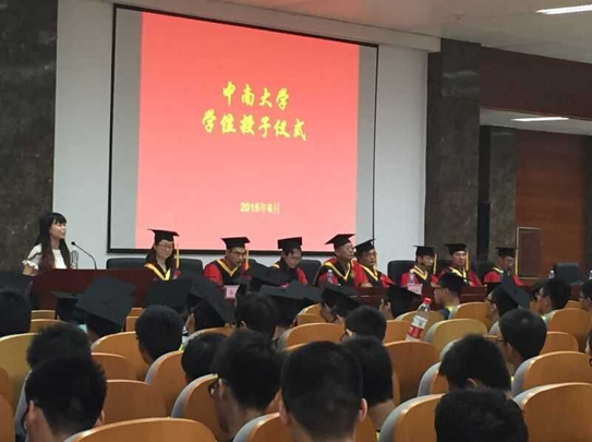结业典礼结束之后,进行了学士学位授予仪式,机电院领导及老师:黄明辉,湛利华,严宏志,蒋炳炎,欧阳洪武,夏建芳,易幼平,王艾伦,刘德福,谭建平,朱文辉,帅词俊,马俊为毕业生颁发学位证书。