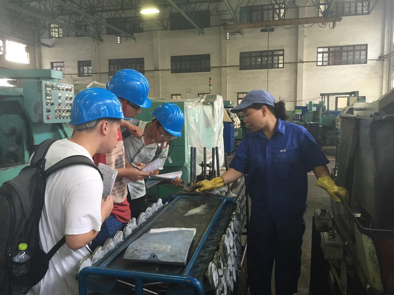 在实习正式开始后,所有同学分为两个小组,每天去各个车间进行参观学习。同学们一边听车间负责人的详细讲解,一边写着自己的实习日记。当遇到困惑的地方,同学们都会得到车间负责人热情耐心的回答。