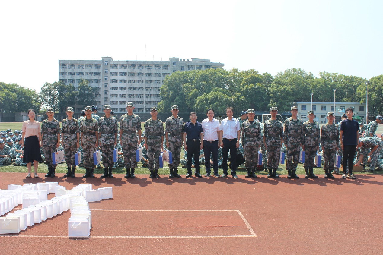 9月17日上午,我们党委书记肖来荣、院长段吉安、党委副书记黄凯及新生班导师代表一行前往南校区操场看望慰问正在军训的新生、学生教官,并为其送上中秋礼包。