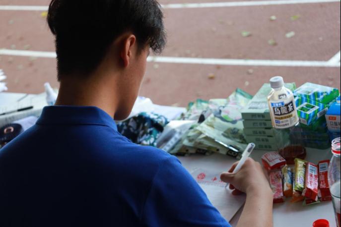 他们虽然无法参加训练,却主动承担起照顾其他同学的责任。每当有同学步履蹒跚地走来,他们总是第一个站起身,熟练地递上碘伏和创可贴;看到有人中暑不适,他们立即上前搀扶,细心递上盐水,用湿毛巾帮其降温。在这个临时组成的集体里,他们成了最忙碌的人——保管物品、传递消息、安抚情绪,那几双或许因伤病而暂时离开训练场的腿,却为需要帮助的同学们奔走着。
